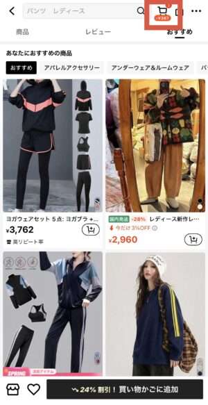欲しい商品ページ下部の「買い物かごに追加」をタップ