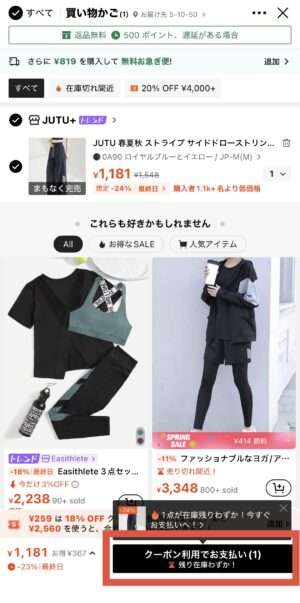 クーポンの最低購入金額の条件を満たしていません最低購入金額が不足していますクーポンの最低購入金額以上になるまでカートに商品を追加してください