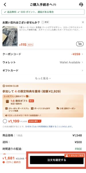 備考有料会員制度「SHEIN CLUB」加入が必要